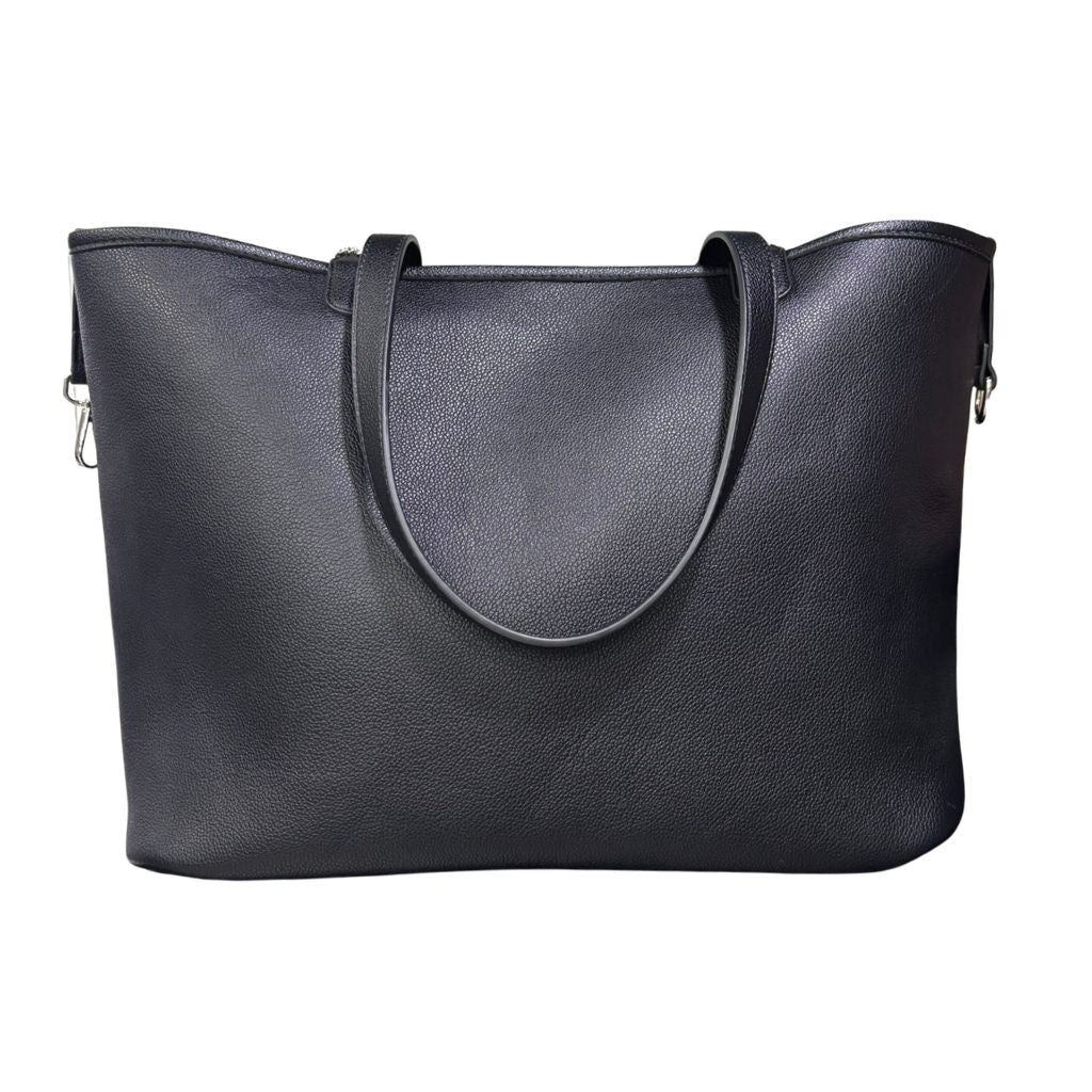 È una shopper dal formato generoso, ideale per trasportare tutto il necessario durante la giornata, dal lavoro allo shopping. Le misure: 41 x 32 x 18 cm