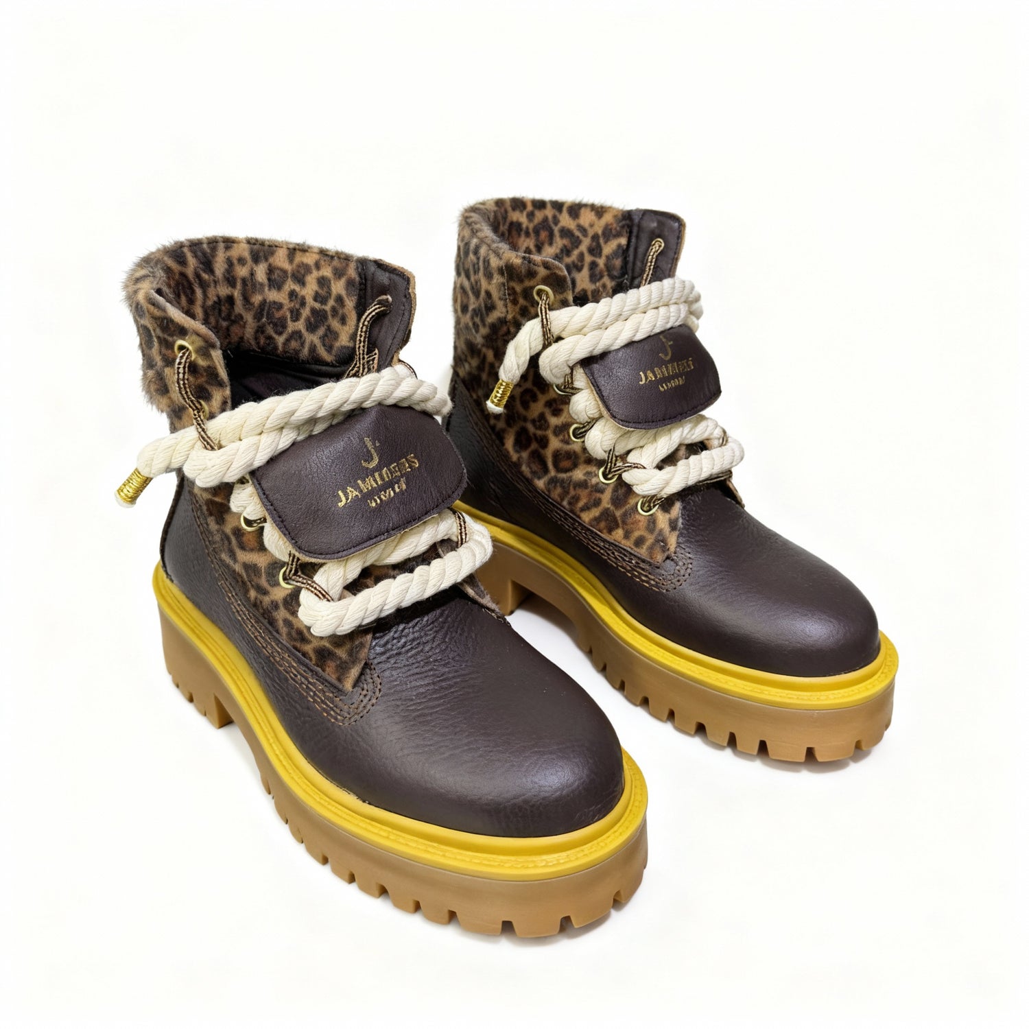 Jammers London Platform Stone Street Dark Brown Leopard Corda Beige