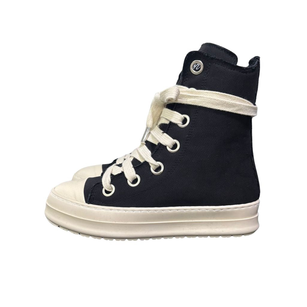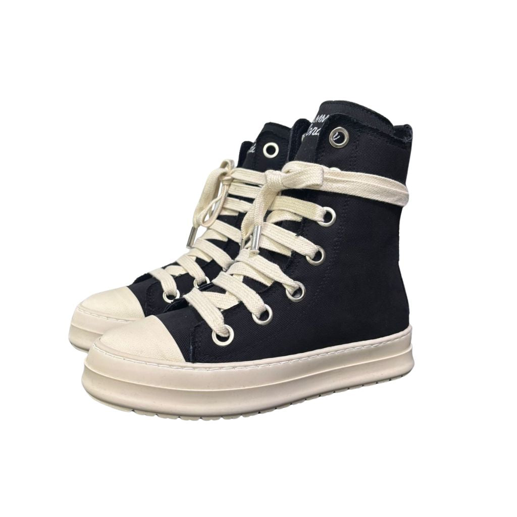 Stivaletto in tela nera dal design minimalista, caratterizzato da un laccio sottile e dal logo distintivo sulla linguetta. Una scelta contemporanea per chi apprezza i dettagli raffinati e la qualità costruttiva, ideale per completare uno stile urbano e consapevole.